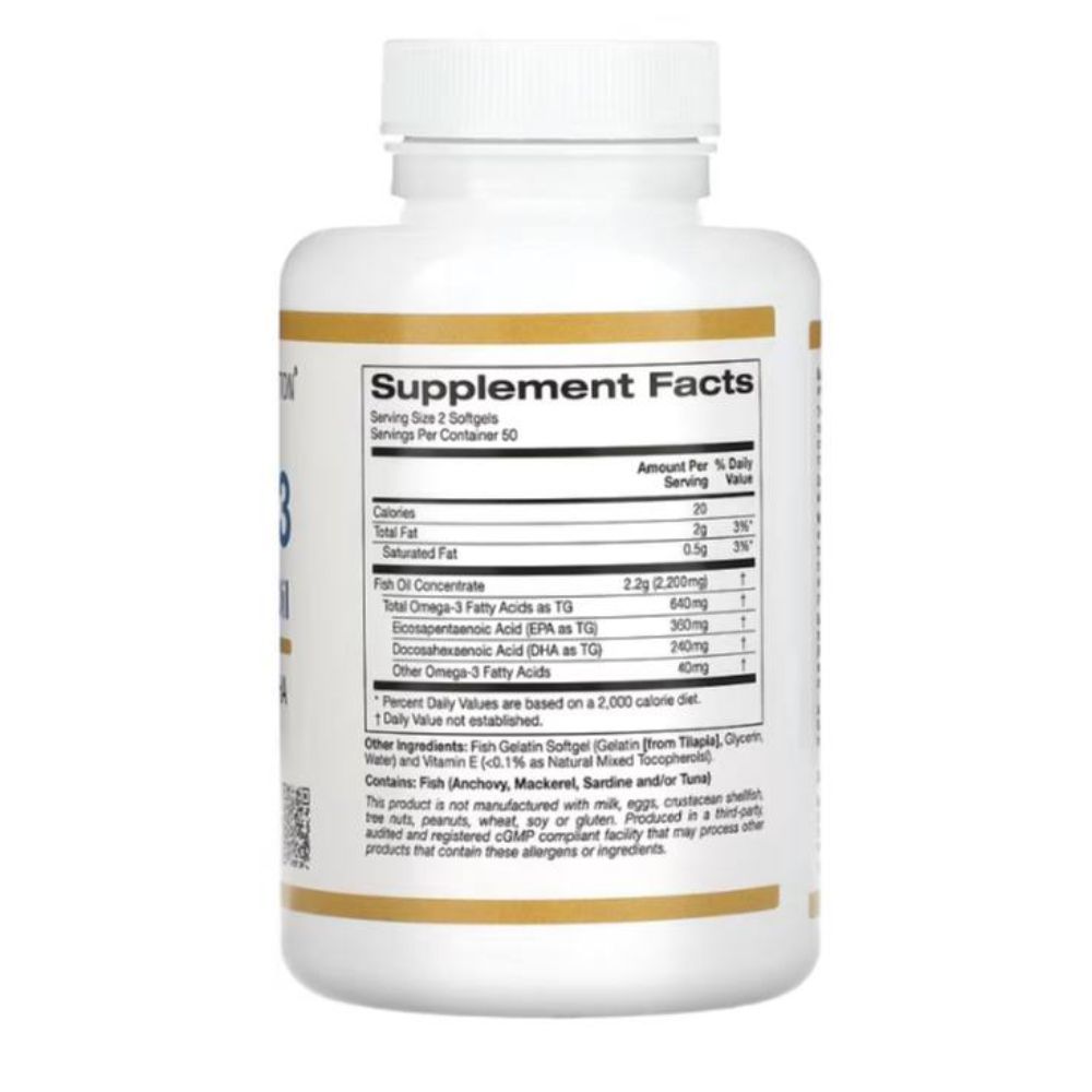 يقدّم PURE Omega-3 Fish Oil زيت سمك عالي النقاء مُركز ومُقطر جزيئيًا لضمان جودة ممتازة وخلوه من الملوثات. يحتوي المنتج على نسب متوازنة من الأحماض الدهنية المفيدة DHA وEPA، والتي تُعد من أهم أنواع الدهون الصحية التي تدعم صحة القلب، والمناعة، والدماغ.