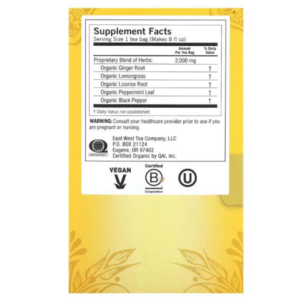 يُستخدم الزنجبيل منذ قرون في طب الأيورفيدا لدعم الهضم وتنشيط طاقة الجسم الطبيعية، ويأتي هذا الشاي بمزيج غني يجمع بين عشب الليمون، وعرق السوس، والنعناع، والفلفل الأسود للحصول على نكهة دافئة ومتوازنة.