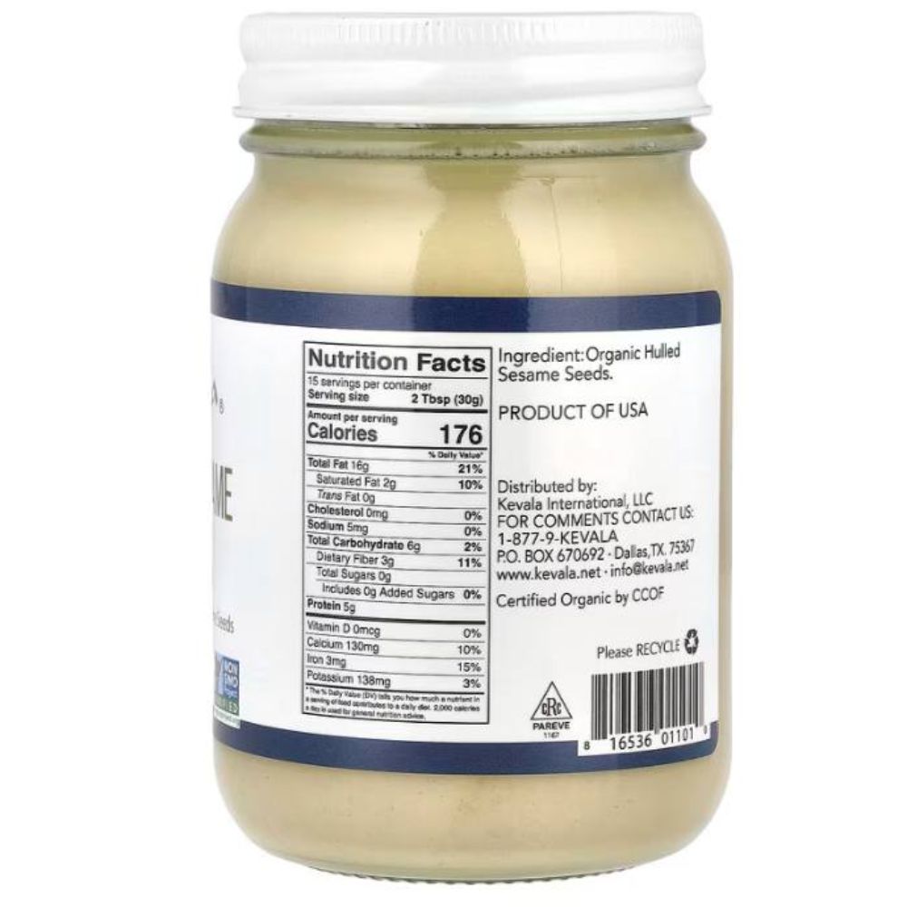 الطحينة لدينا معتمدة عضويًا من وزارة الزراعة الأمريكية، وخالية من الجلوتين، والألبان، والكوليسترول، وخالية تمامًا من المكونات المعدلة وراثيًا.