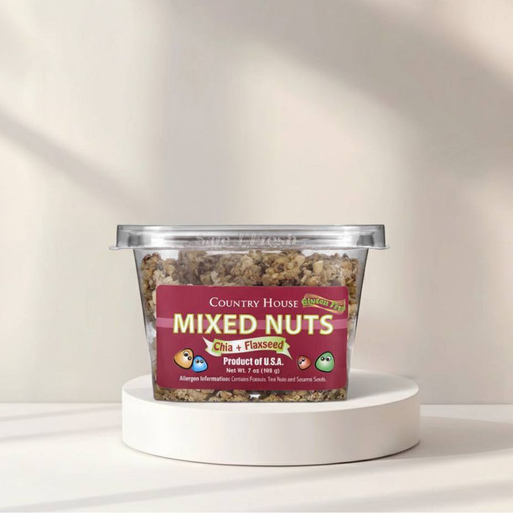 المزيج غني بالعناصر الغذائية، الألياف، الدهون الصحية، والأوميغا، مما يجعله خيارًا رائعًا للوجبات الخفيفة أو كإضافة للشوفان والزبادي.