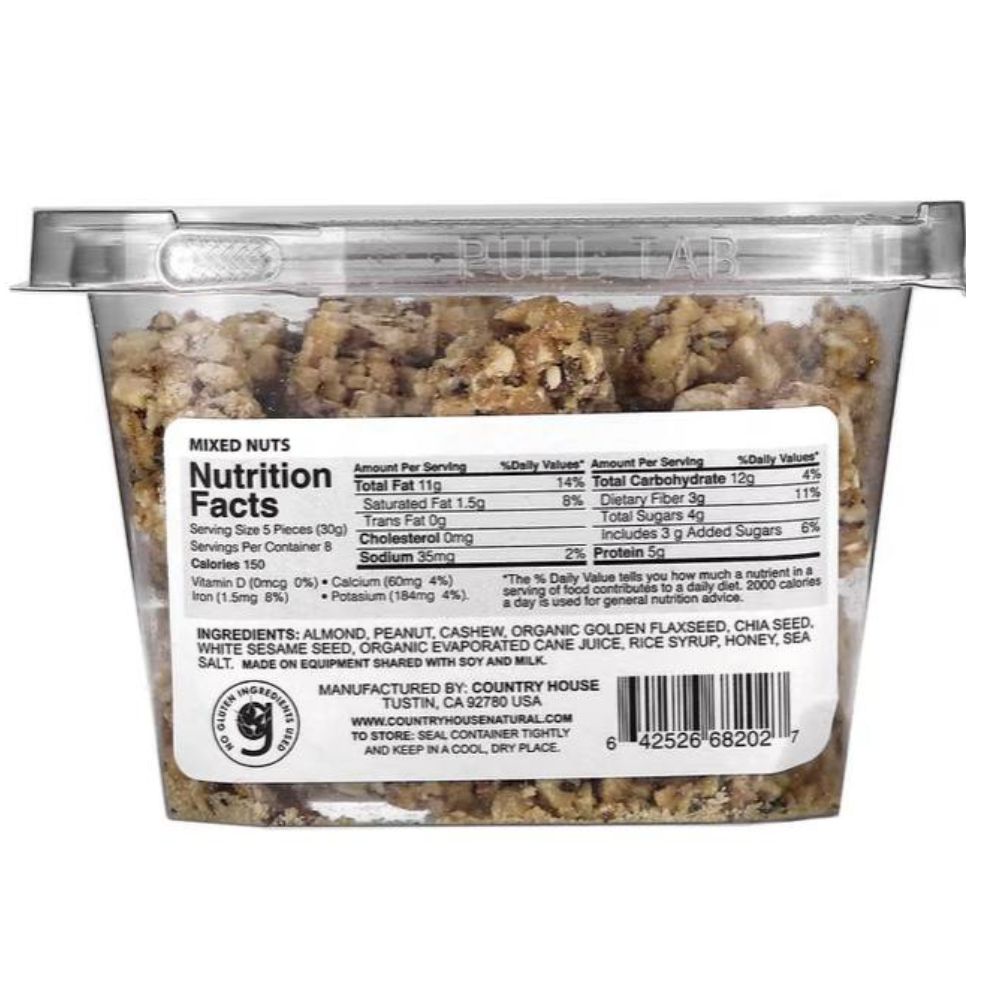 يحتوي هذا المزيج على اللوز، الفول السوداني، الكاجو، بذور الكتان الذهبية، بذور الشيا، بذور السمسم الأبيض، إضافة إلى لمسة خفيفة من عصير القصب المبخر والعسل وشراب الأرز لخلق نكهة متوازنة ومميزة.